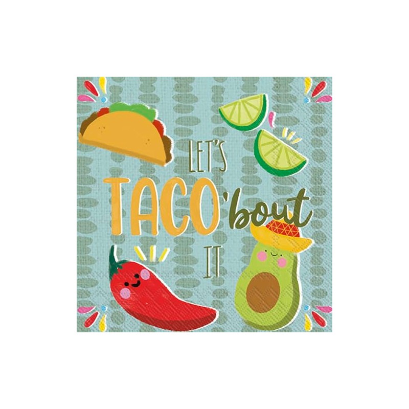 IHR Ideal Home Range Cocktail Napkins Disposable 3-Ply Paper Party Napkin Pack, 5" x 5", Taco Bout It, 20-Count