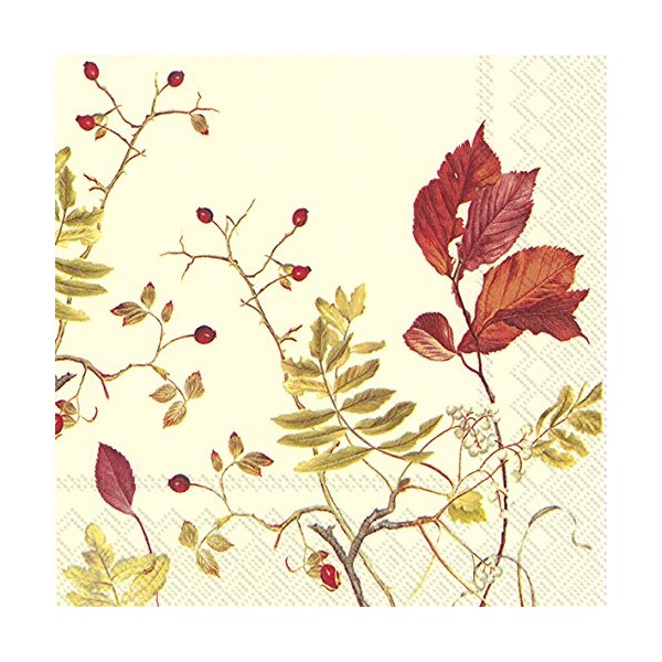 IHR Papierservietten, Herbstzweige, 33 cm, quadratisch, cremefarben, 20 Stück
