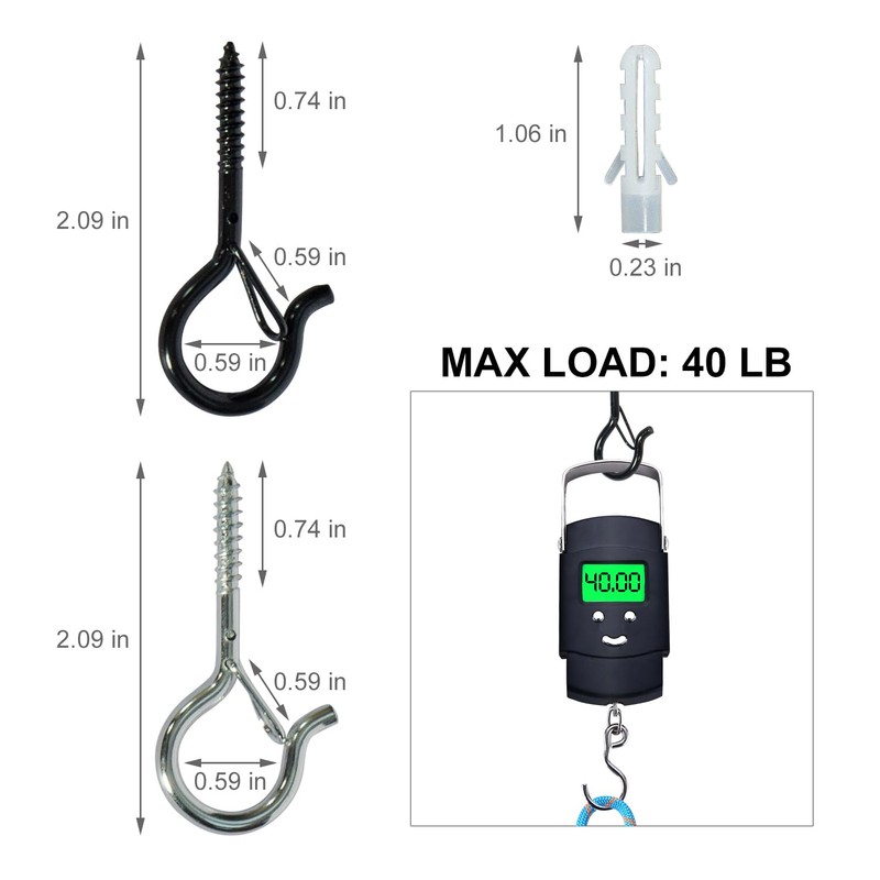 - Made from high-quality iron and coated with anti-rust paint, these eye hooks are built to last. Each hook can hold up to 30lbs, providing reliable support for your hanging needs.