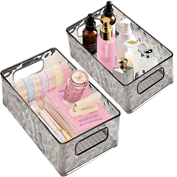 IIDEA 2 Pack Clear Plastic Storage Bins,Multi-Purpose Cabinet Organizers,Stackable Space-Saving Containers for Home Kitchen Bathroom Office Closet Garage Freezer Fridge(Grey)