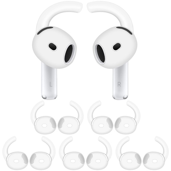 IiEXCEL 5 Pairs AirPods 4 Ear Hooks Wingtip, Replacement Silicone Wings Sport Earhooks Ergonomic Design Wing Tips Holder Non-Slip Anti-Slip Comfortable Accessories Compatible with AirPods 4th - White