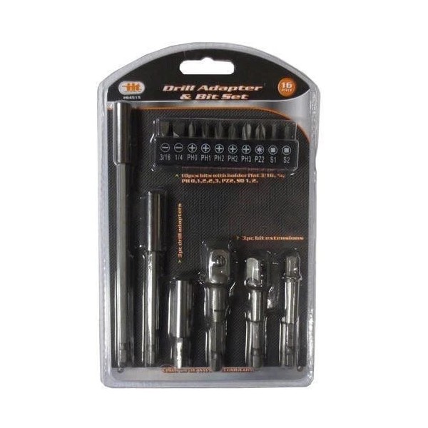 IIT 16pc Drill Bits Socket Adapters Hex Drill Bit Extensions Set Tools 64515