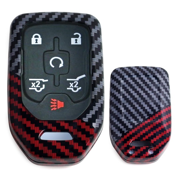 iJDMTOY Glossy Black/Red Mix Color Carbon Fiber Finish Hard Plastic Key Fob Case Compatible with GMC Acadia Terrain Sierra Yukon, Chevy Silverado