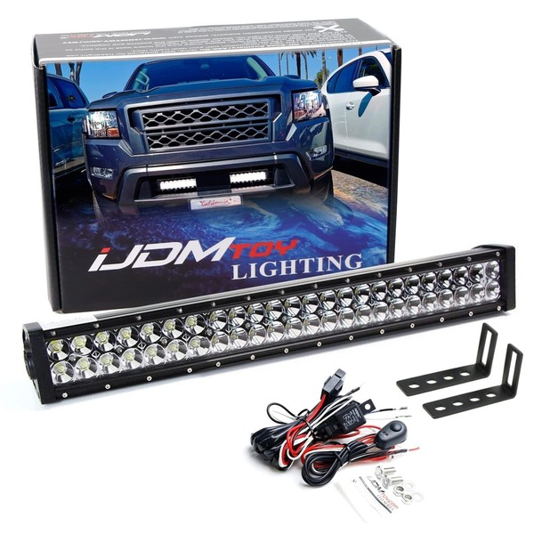 iJDMTOY Lower Grille Mount 25-Inch LED Light Bar Kit Compatible with 2022-up Nissan Frontier, Includes 144W Double Row LED Lightbar, Lower Bumper Mounting Brackets & On/Off Switch Wiring