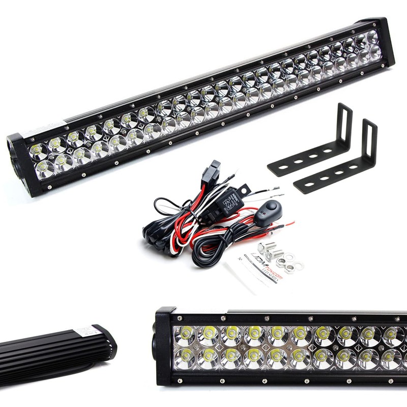 • Includes (1) 25" xenon white 144W high power double-row spot beam LED lightbar, (1) set of industry grade full steel metal constructed bracket mounts and (1) set of relay wire harness w/ in-line fuse and on/off switch