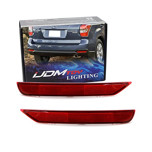 iJDMTOY Red Lens Rear Bumper Reflector Lenses Compatible With 2009-2018 Subaru Forester, OE-Spec LH RH Assembly