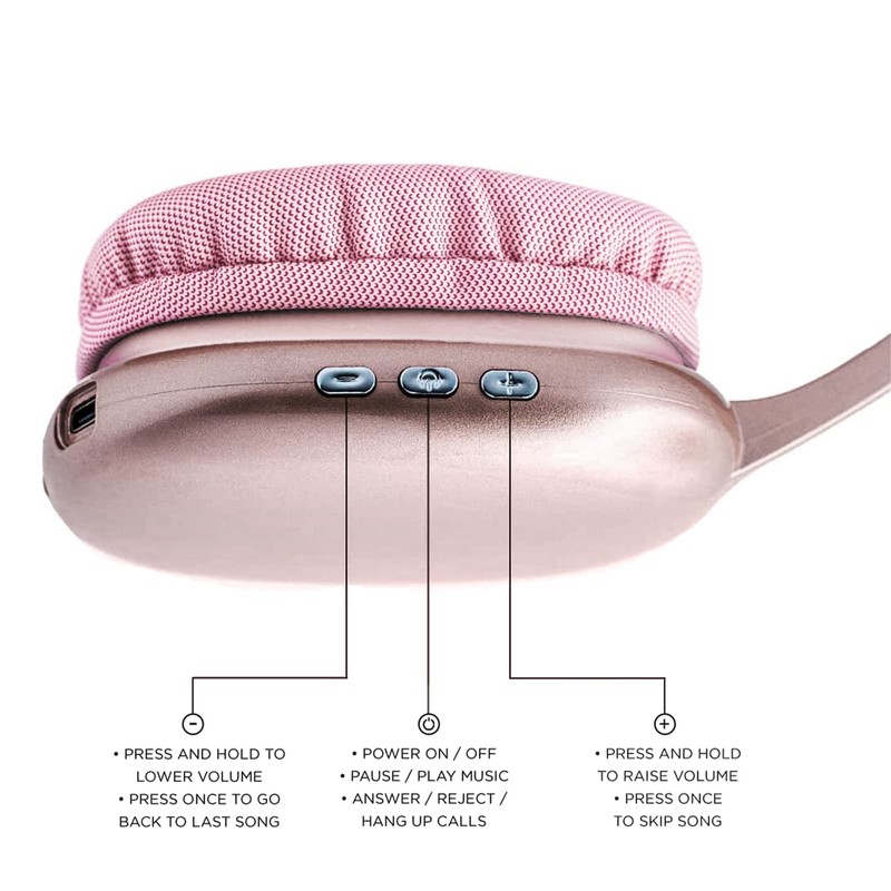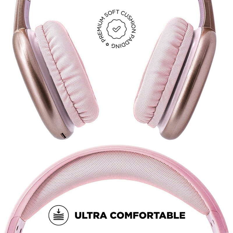 iJoy Ultra Wireless Headphones with Microphone- Rechargeable Over Ear Wireless Bluetooth Headphones with 10Hr Playtime, SD Slot, Backup Wire- Soft Cushion Wireless Headset with Mic (Pink)