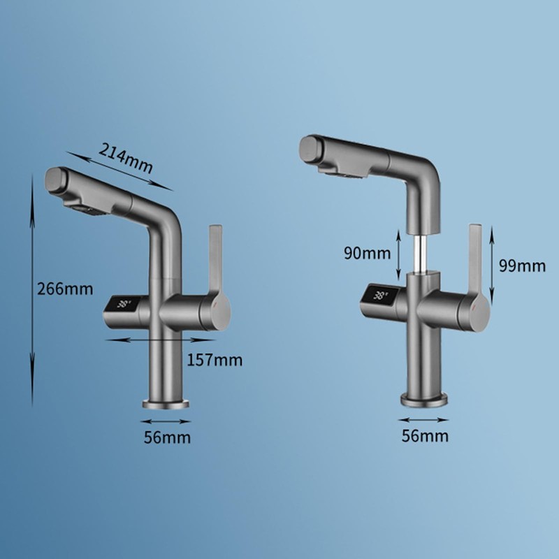 IJPDXOLBQ Pull Out Bathroom Lifting Brass Bathroom Sink Faucet with Temperature Display, 360° Rotation 2 Function Basin Deck Mount Single Handle Hot and Cold Vanity Mixer Tap,Gray(Gris)