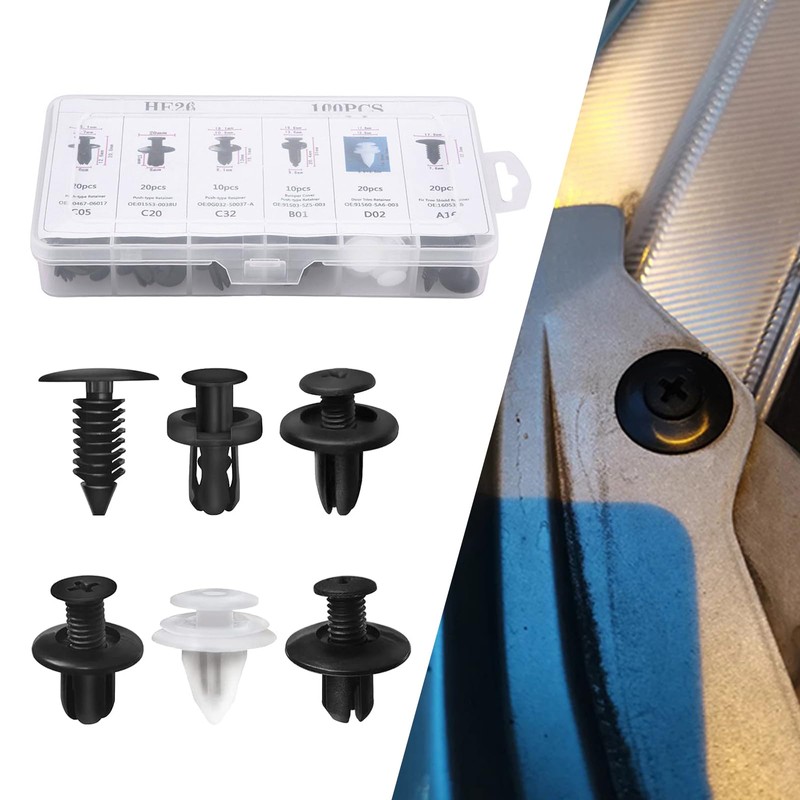 - Portable & Organized Storage: Conveniently packaged in a compartmentalized plastic box, this set ensures organized storage and easy portability. Its compact design makes it a hassle-free companion for your car, ensuring quick access to the right rivet whenever needed.