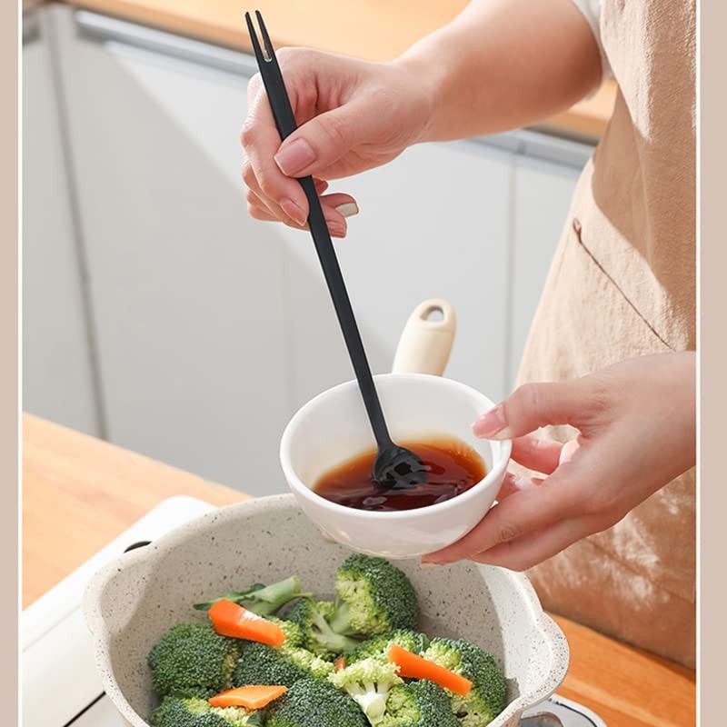 IKAAR Set of 2 Long Spoons, Plastic Spoons, Fork Spoon, Combination Cocktail Spoon, Mixing Spoon, Mini Cooking Spoon, Long Drink Spoon, Plastic Kitchen