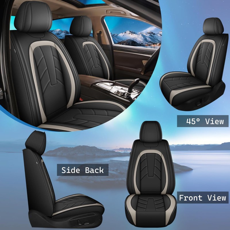 - 【Fashionable and Practical】Fine sewing technology and unique design can add a sense of fashion to your car interior. The front seat covers have storage pockets to organize your sundries and keep your car clean and tidy, and the soft leather seat covers can make you feel comfortable during long drives, commutes and family trips.