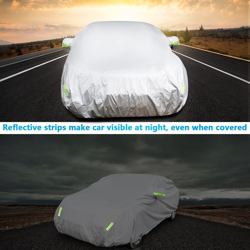 - 4, Protection from all wether: Our car covers provide overall protection of car from all the elements: rain, dust, snow, industrial pollution, bird droppings, leaves, pollens, summer sun etc. When the wind blows, leaves, branches, and small sand stones will cause trouble and harm to the car.