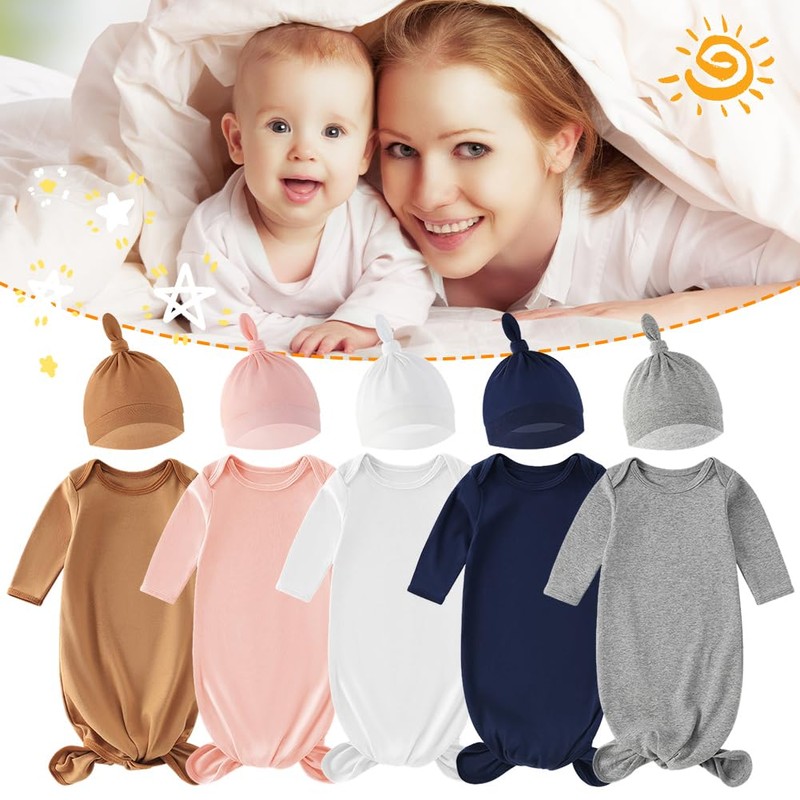 - The thoughtful knotted bottom design facilitates swift and effortless diaper changes, while the stretchable fabric ensures unrestricted, natural movement. The coordinating knotted hat adds an extra layer of adorable charm, perfect for capturing memorable photos.