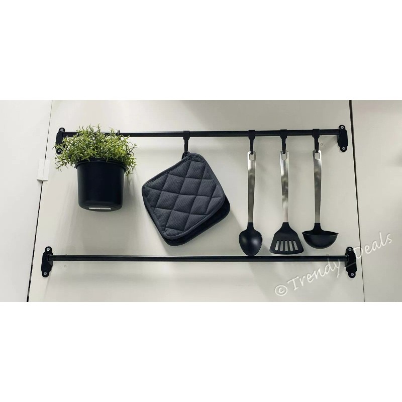 Ikea HULTARP Kitchen Bath Rail Rod Steel, Black 23 1/2" + 5 Hooks SET - NEW