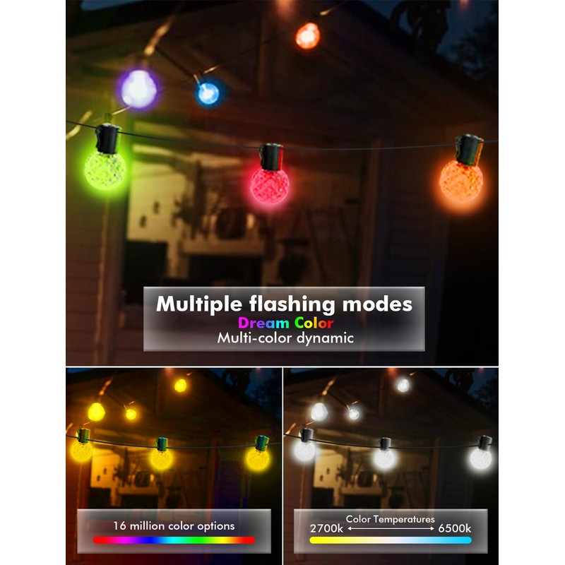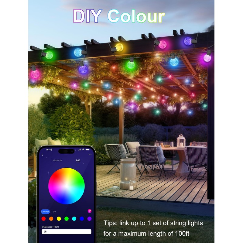 - 【Music Sync Mode】Dance the night away as the outdoor lights for patio react to your songs via the integrated mic. With the patio lights outdoor waterproof don't only hear your music, but live it with beautiful dynamic lighting.