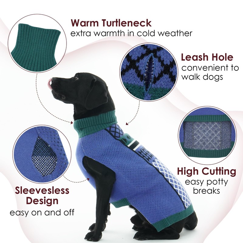 - Winter Dog Clothes: The sleeveless design reduces friction around the armpits and makes it easy on and off, while the turtleneck provides extra warmth. The convenient leash hole allows for harness access, making walks easier without removing the sweater