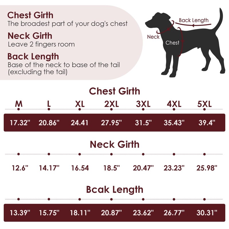 - Size M: Chest Girth 17.3in/44cm, Neck Girth 12.6in/32cm, Back Length 13.4in/34cm. The medium dog sweater is suitable for Pug, French Bulldog, Boston Terrier, Miniature Schnauzer, Dachshund,Weiner. Please check our size chart before ordering
