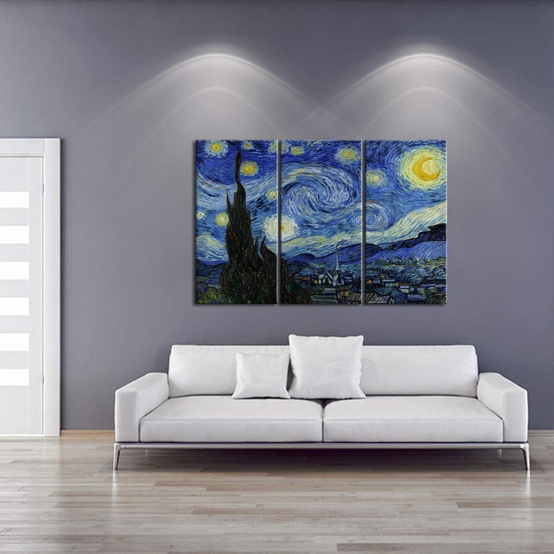 iKNOW FOTO Large 3 Panel Canvas Painting Wall Art Starry Night by Van Gogh Famous Oil Paintings Reproduction Modern Giclee Canvas Prints Artwork for Home Office Decorations 16x32inchx3pcs