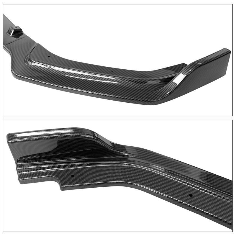 - Color: Carbon Fiber Print | Material: PP - Polypropylene, Factory Grade Plastic | Package includes: 1x Set of Front Bumper Lip (3PCS)