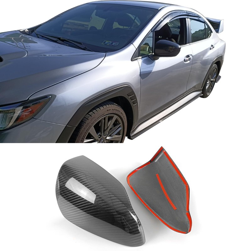 IKON MOTORSPORTS, Mirror Covers Compatible With 2022-2025 Subaru WRX All Models, Real Carbon Fiber Left Right Rear View Side Mirror Cover Cap Overlay Trim 2PCS 1Pair