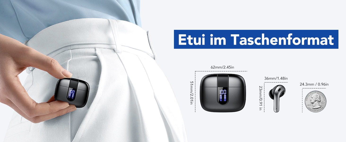 LED Power Indicator & 50-Hour Playtime: Double LED display shows battery levels for both earbuds and case. Enjoy 8 hours of use per charge, with an extra 50 hours from the case.