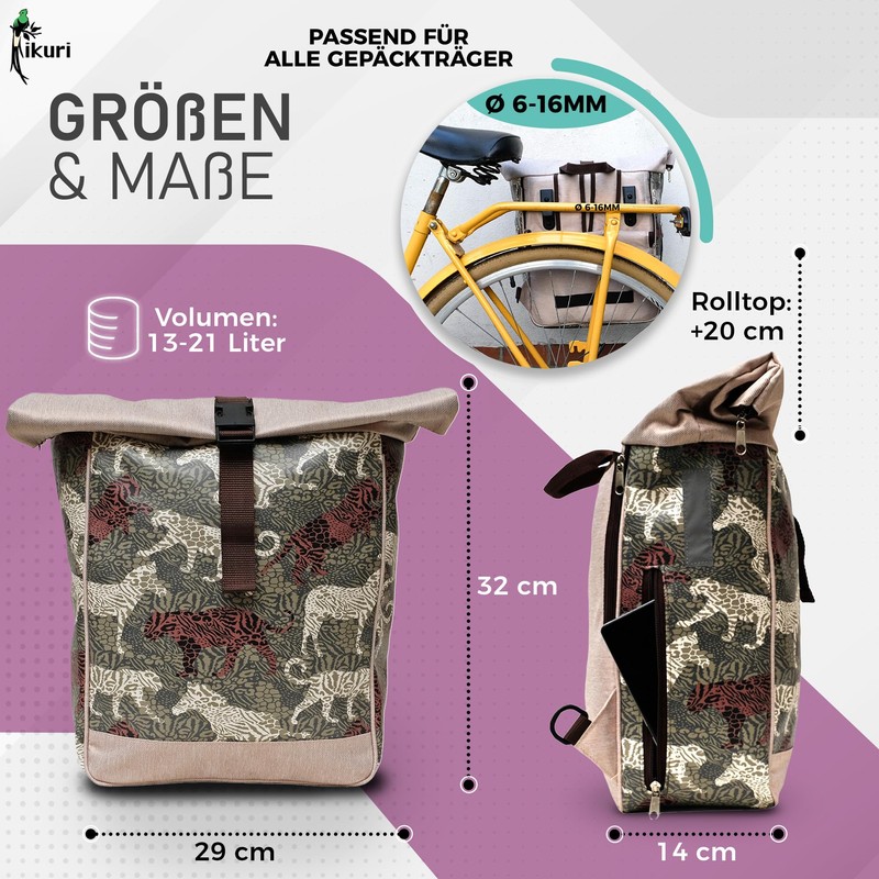 Ikuri Bicycle Bag / Backpack Combination Bicycle Backpack Made of Tarpaulin for Pannier Rack Pannier Bag Waterproof for Women, Animals