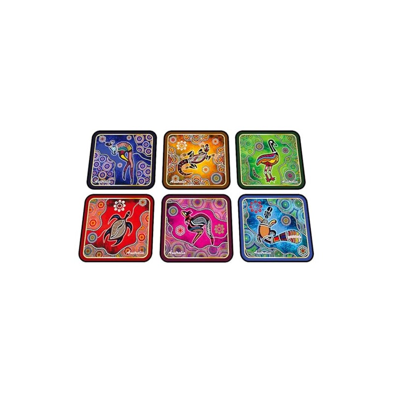ILA Corkwood Aboriginal Art Animals Coaster (Pack of 6)