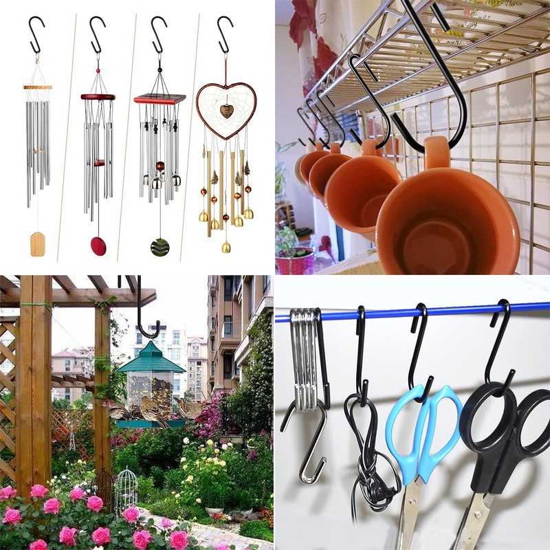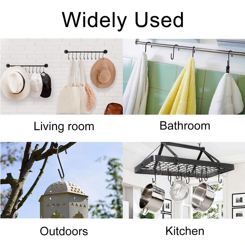 - Our heavy duty s hooks are a simple and brilliant storage solution for hanging anything in your kitchen, closet, workshop or garage where space is limited. Just simply hang them on pot rack, wall rails or shelves.