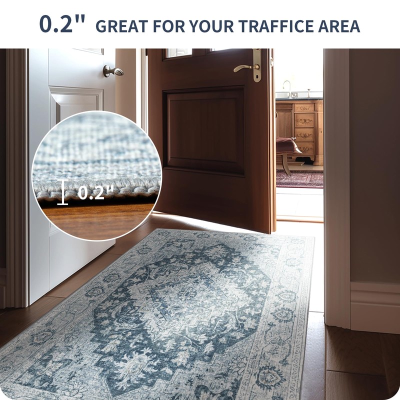 - [Low Pile & Home Decor] The low pile design is super for high-traffic areas, and the colors and patterns of the rug are super for home decoration, it fits most home color schemes.