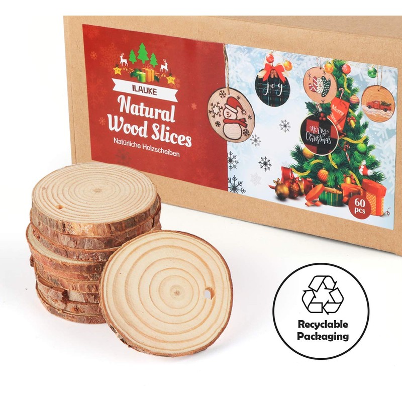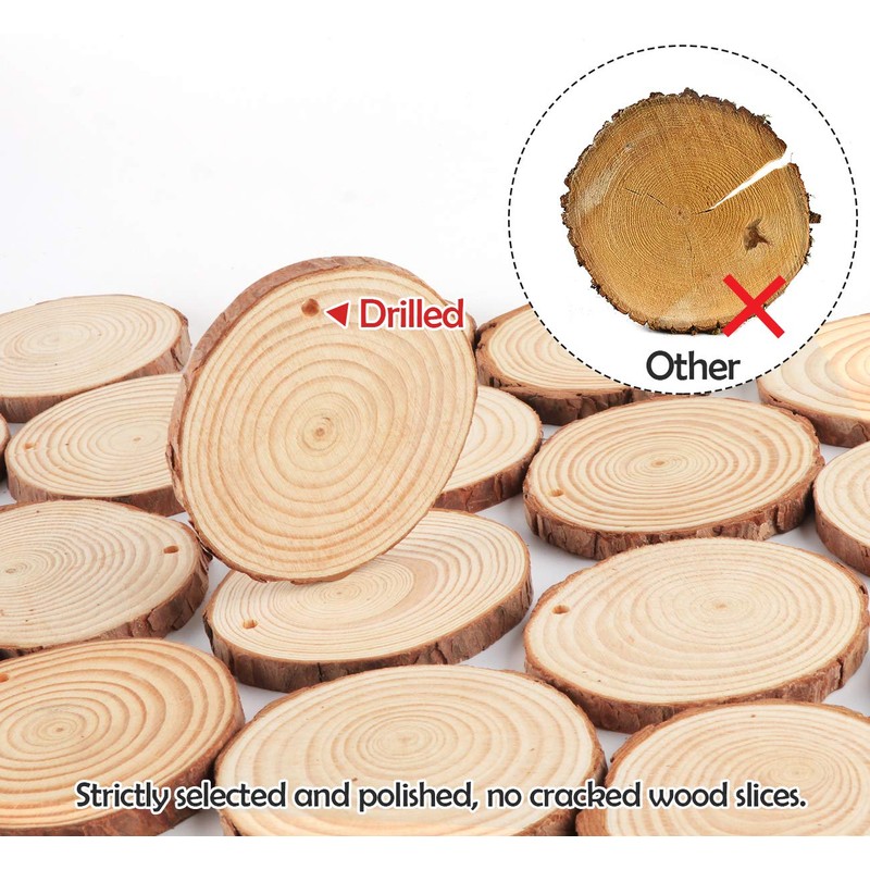 - 【Pre-drilled Log Discs】You can write, sculpt, paint on the smooth wood slices. Every slice was drilled with small hole for you to hang easily.