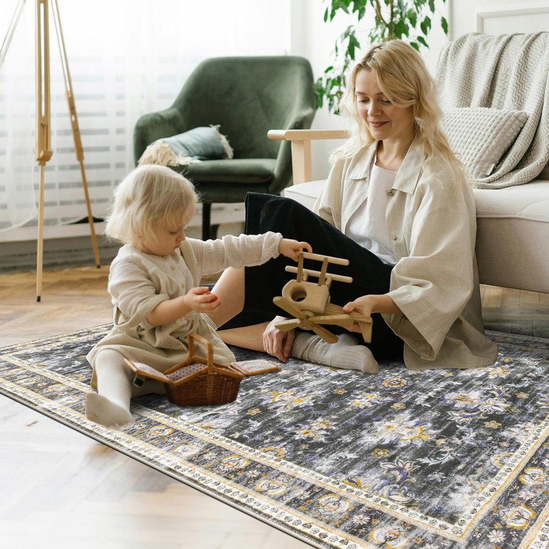 - Non-Slip & Non-Shedding Area Rug: One of the best features of this rug is its non-slip backing, made of TPR rubber backing. No longer have to worry about slipping or tripping on the rug, which is especially important with young children in the house. The rug stays in place, even with heavy foot traffic.Using more sophisticated technology to attach the blanket surface and backing, the surface fluff is not easy to fall off.