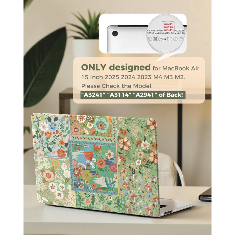 - Check Your Model: ONLY designed for 2025 MacBook Air 15 inch Case(2025–2023), Liquid Retina Display, and Touch ID (Models: A3241/A3114/A2941). Please double check the number “Axxxx” on the bottom of the laptop before buying