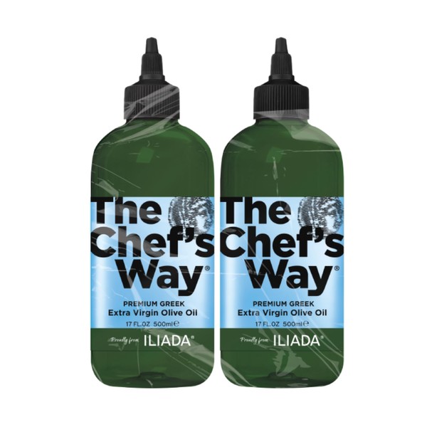 ILIADA The Chef’s Way Greek Extra Virgin Olive Oil Twin Pack (2x 500ml) | Precision Squeeze Bottle |100% Greek | Monovarietal Koroneiki | Cold-Pressed | Polyphenol Rich | Chef's Favorite