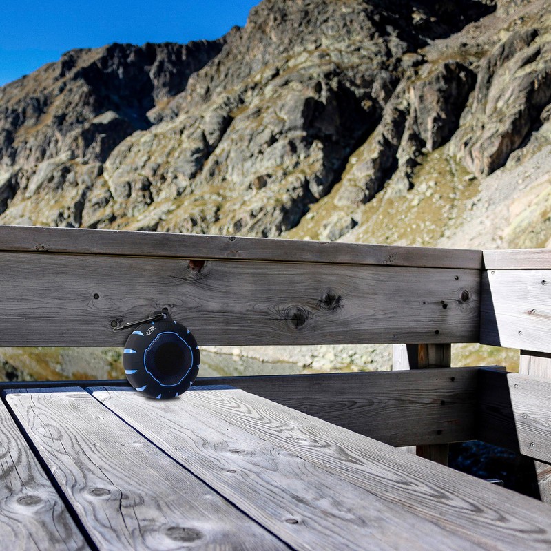 - Bluetooth wireless waterproof speaker that is shock proof and features a rubberized coating; Wireless range of 60 feet