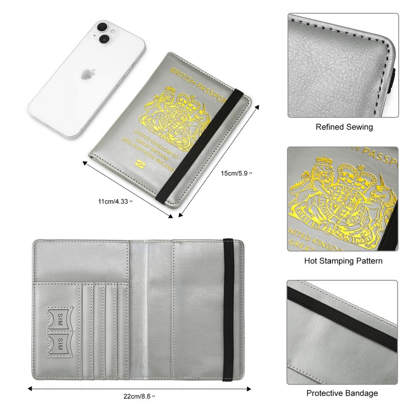 ILIYAH Passport Cover Holiday Essentials UK Passport Holder Minimalist Wallet British RFID Blocking Secure Travel Accesaries Ireland Card Holder(Grey)