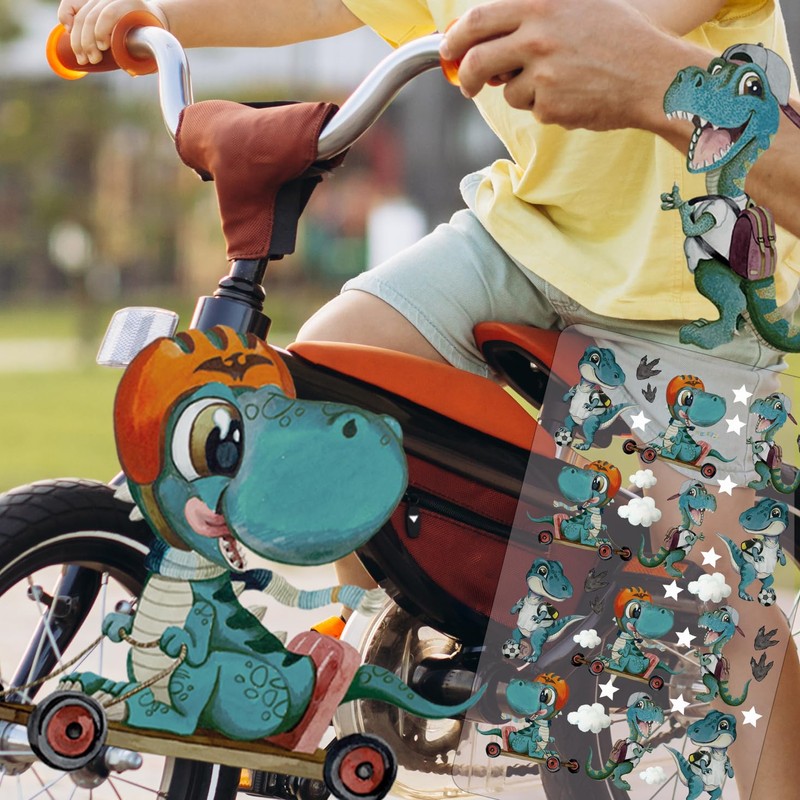 - Simply cool: immerse yourself in the wild world of dinosaurs with our enchanting Rub on Dino bicycle stickers, made with the innovative rub-on technology, allows the designs to be applied seamlessly and easily to the children's bike.