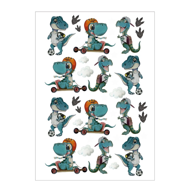 - Box contents and size: bicycle sticker Rub on Rubons dinosaurs. You will receive: 12 dinosaur stickers + clouds and footprints Rub ons (sheet approx. 15 cm wide x 10 cm high)