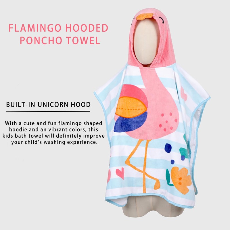 - ✔ Multi Use: The versatile kids towel poncho can be worn as a coverup, hoody, poncho or a bath robe and it can even be used as a washcloth, great for toddlers in swimming activities. Wrap your little one in this soft baby hooded towel after tub time, at the pool or beach. It allows kids to be hands free while staying warm and dry, and they'll love the flamingo accent as they pretend play.