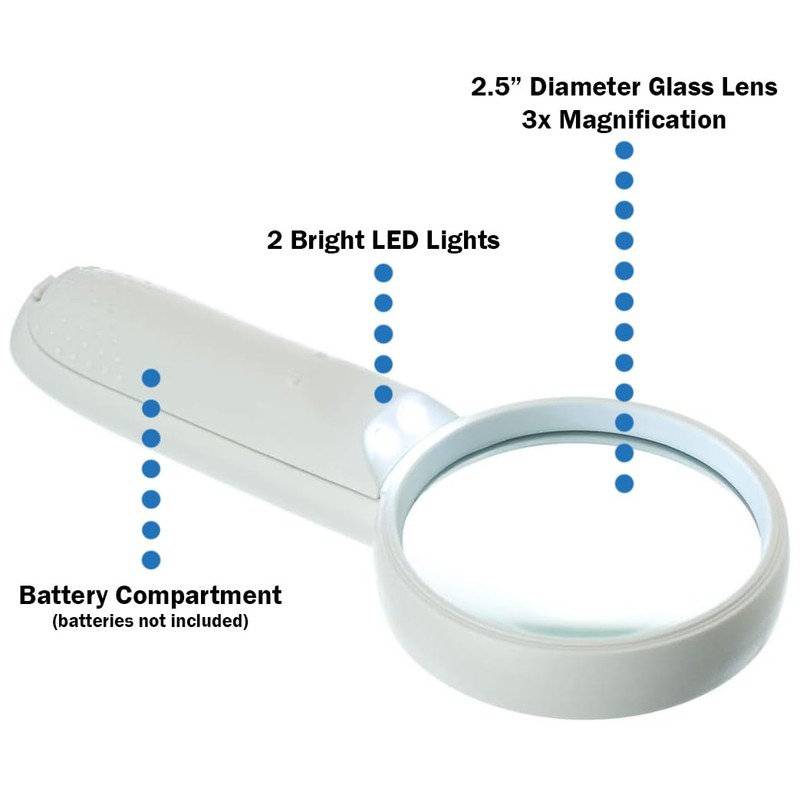 Illuminated 2.5" Diameter Handheld Magnifying Glass with 2 LEDs, 3X Magnification Power - EX ELECTRONIX EXPRESS