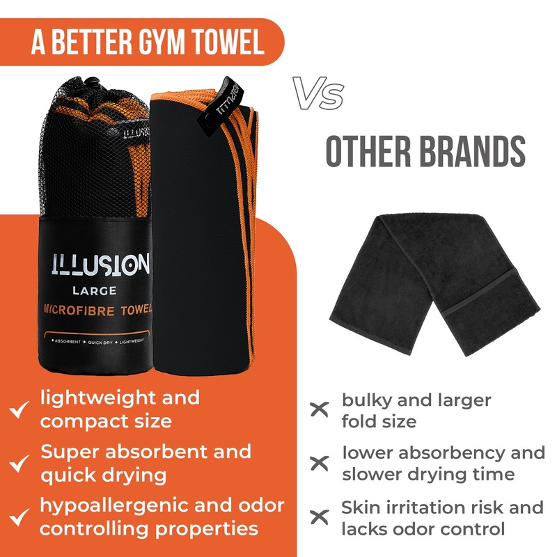 illusion Extra Large Microfibre Towel (80x180 cm) – Compact, Lightweight & Fast Drying Towel. Perfect Gym, Travel, and Swimming Towels for Adults. Ideal for Post-Workout Showers and After Swimming