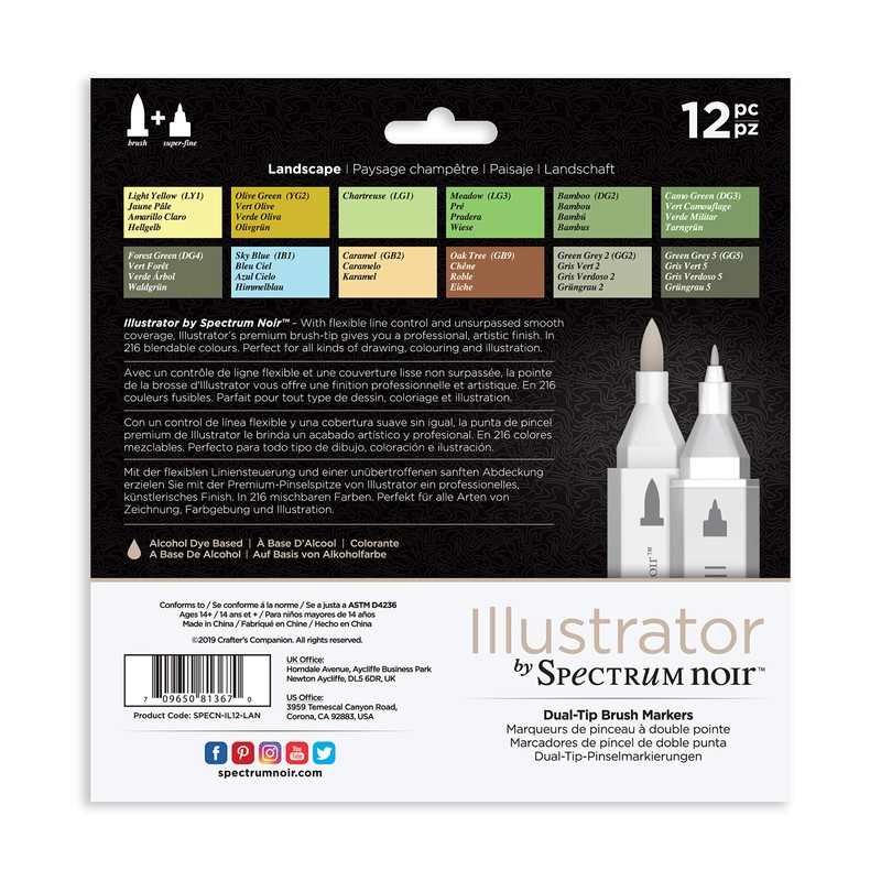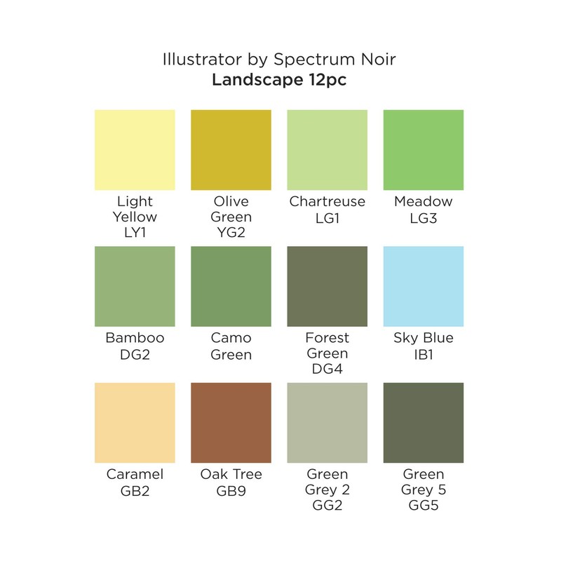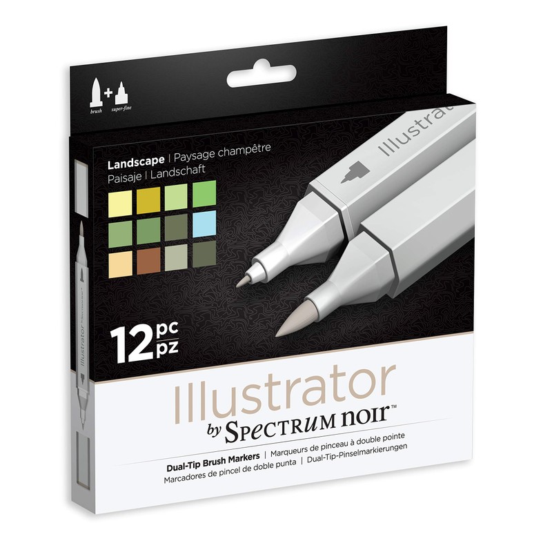 Illustrator by Spectrum Noir 12 Piece Twin Tip Artist Alcohol Marker, Landscape