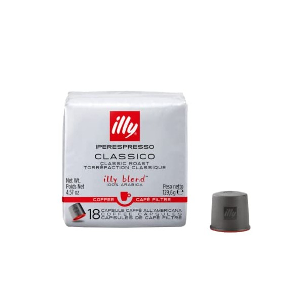 illy Classico iper Coffee capsules, Medium Roast, Classic Roast with Notes Of Chocolate & Caramel, 100% Arabica Coffee, Coffee Capsules for illy iper Coffee Machines, 18 Count