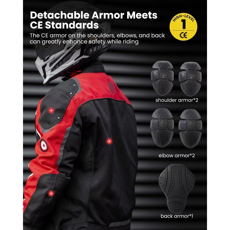 • Waterproof and Breathable: The ILM mesh motorcycle jacket comes with a removable waterproof liner for rainy rides. Featuring large mesh area, it offers excellent airflow to keep you cool during summer and long-distance rides