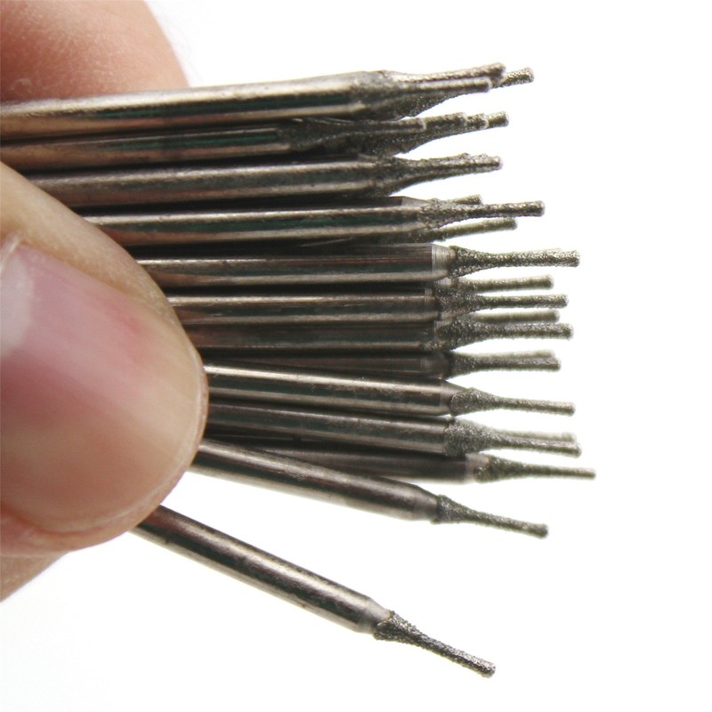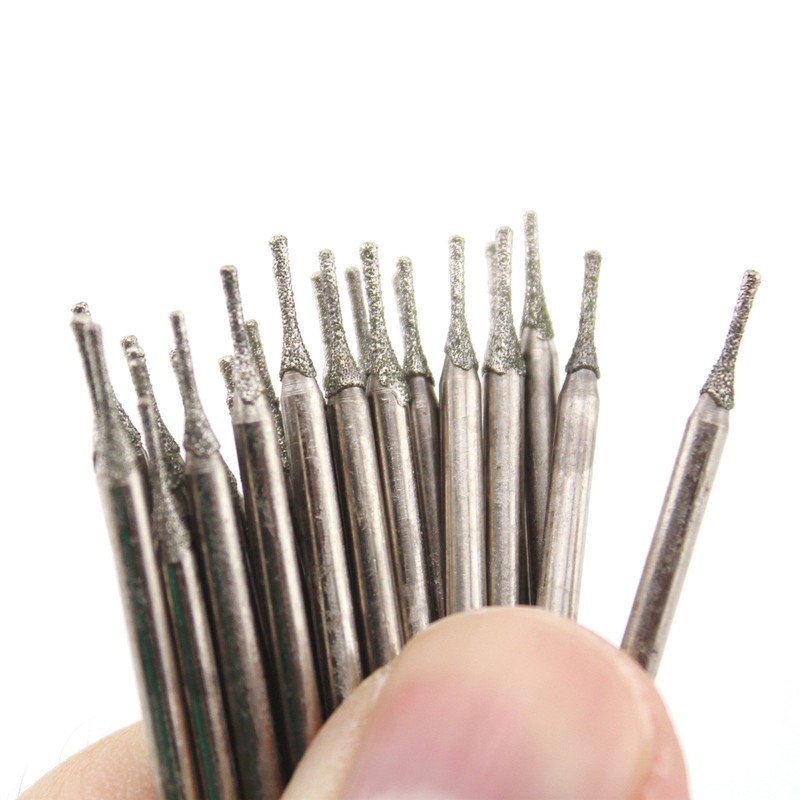 Quantity: 30 Pcs Material: Metal, diamond Color: Silver Tone Drilling speed: Drill a Holes In Seconds Use with water as a lubricant Quick Tips 1. Please add water for coolant and drill slowly 2. start drill at 45 Degree to surface and align to 90 Degree as hole forms 3. Never use drills while machine is in hammer action. 4. Holes Require No Futher Work As Cutting Is Clean We Can List Any Size (Head Diameter from 0.4mm - 3mm)& Amount Of This ProductThe item Shank Diameter:2.35mm(3/32"); Suitable for electric nail drill, carving machine with a 3/32" collet.Not suitable dremel3000