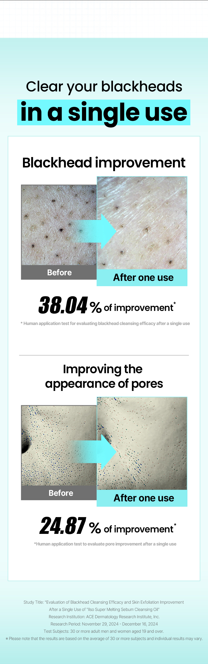 Improves blackheads, clear pores, sebum, and skin texture after single use. The soft and moisturizing texture provides quick emulsification for clear finish. A low irritating product that allows gentle cleansing of sebum and blackheads even on sensitive skin types.