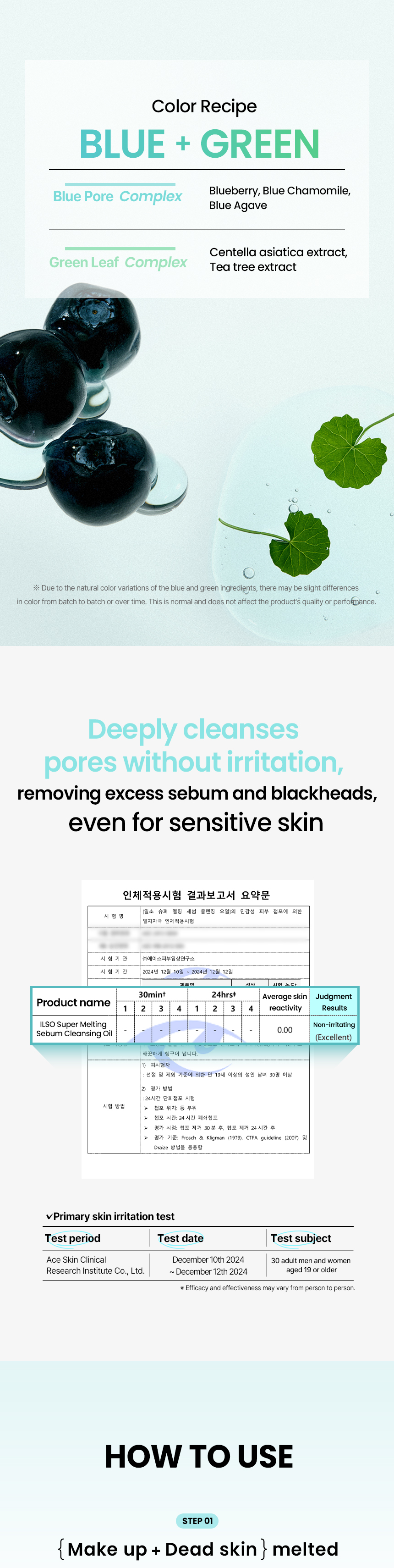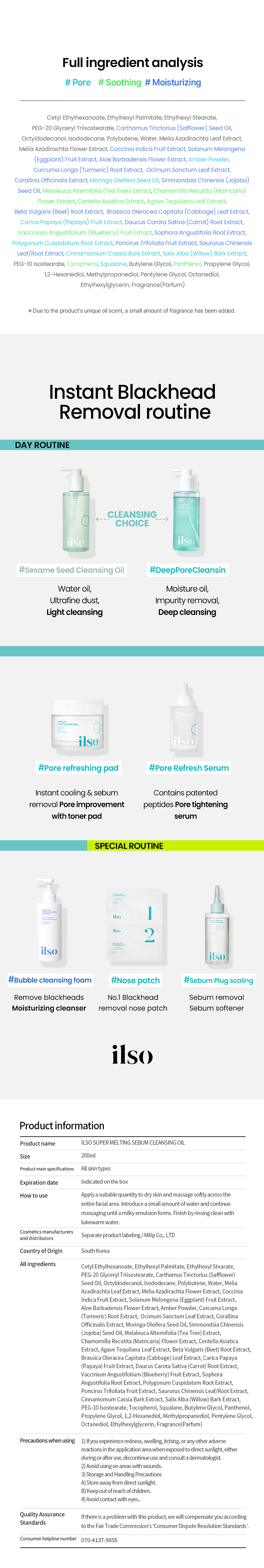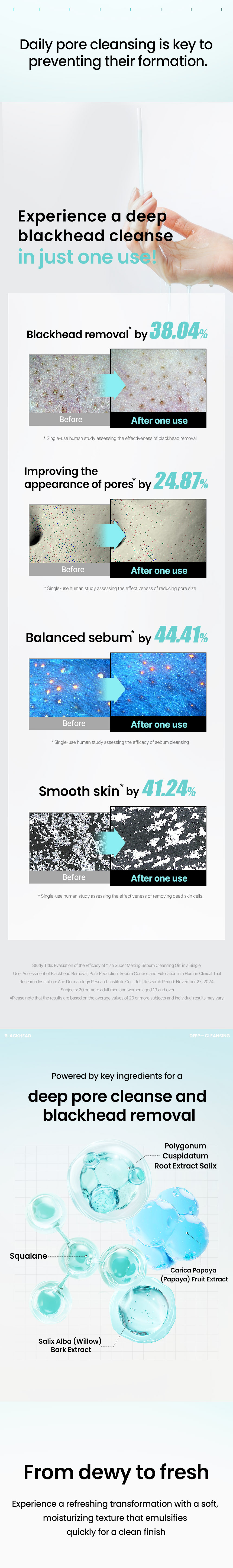 Contains Polygonum Cuspidatum Root Extract, Squalane, Carica Papaya (Papaya) Fruit Extract, and Salix Alba (Willow) Bark Extract to help with deep cleansing of blackheads. Contains blue pore complex and green reef complex to make smooth and moisturizing finish.