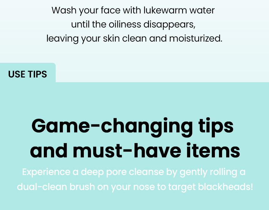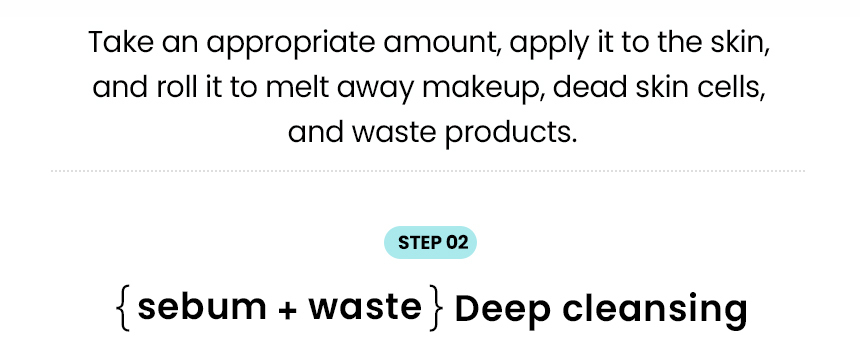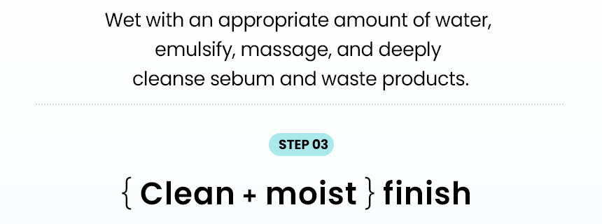 1. Apply adequate amount of the product on skin and then massage to dissolve dead skin cells and wastes. 2. Apply some water to emulsify and cleanse sebum and wastes, etc. 3. Rinse with lukewarm water to get clear and moisturizing finish.
