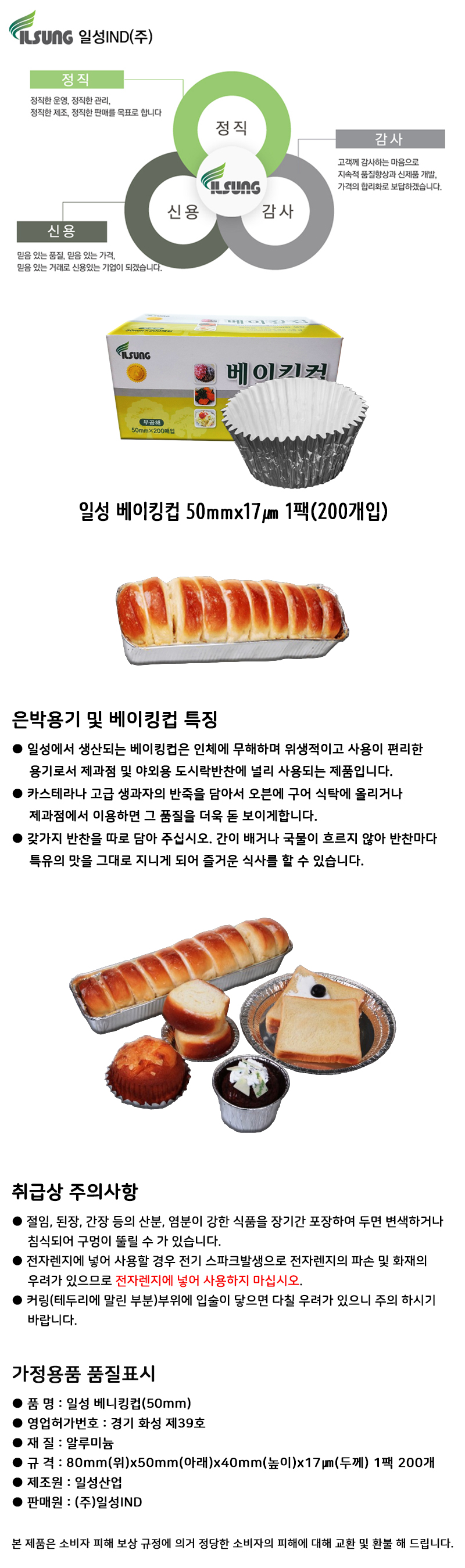 Ilsung Baking Cup Round 50mm 200 sheets / 일성 베이킹컵 원형 50mm 200매