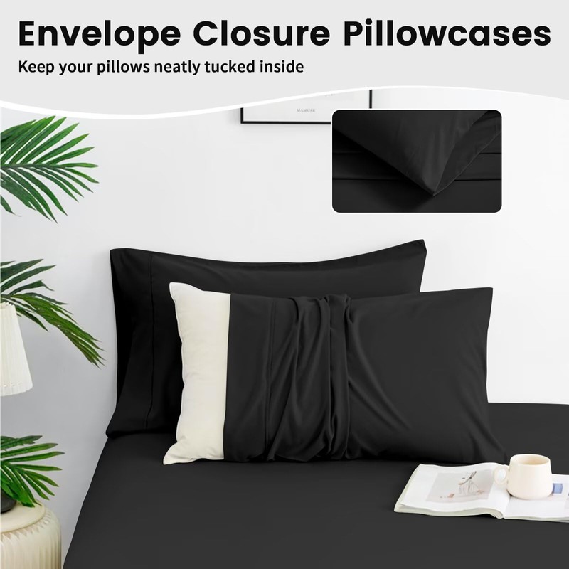 ILVOE King Size Sheet Set, King Size Bed Sheets 4 Pieces, Breathable and Soft Hotel Style Sheets Set, Microfiber Sheets with Deep Pockets, Easy Care, Black
