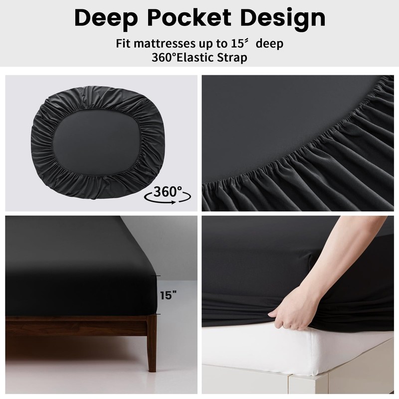 - 【Deep Pocket】Our bed sheet king is designed to fit mattresses up to 15 inches deep, ensuring a snug and secure fit on a wide range of mattress sizes. The deep pockets accommodate modern mattresses and provide a universal fit that works perfectly with most beds.